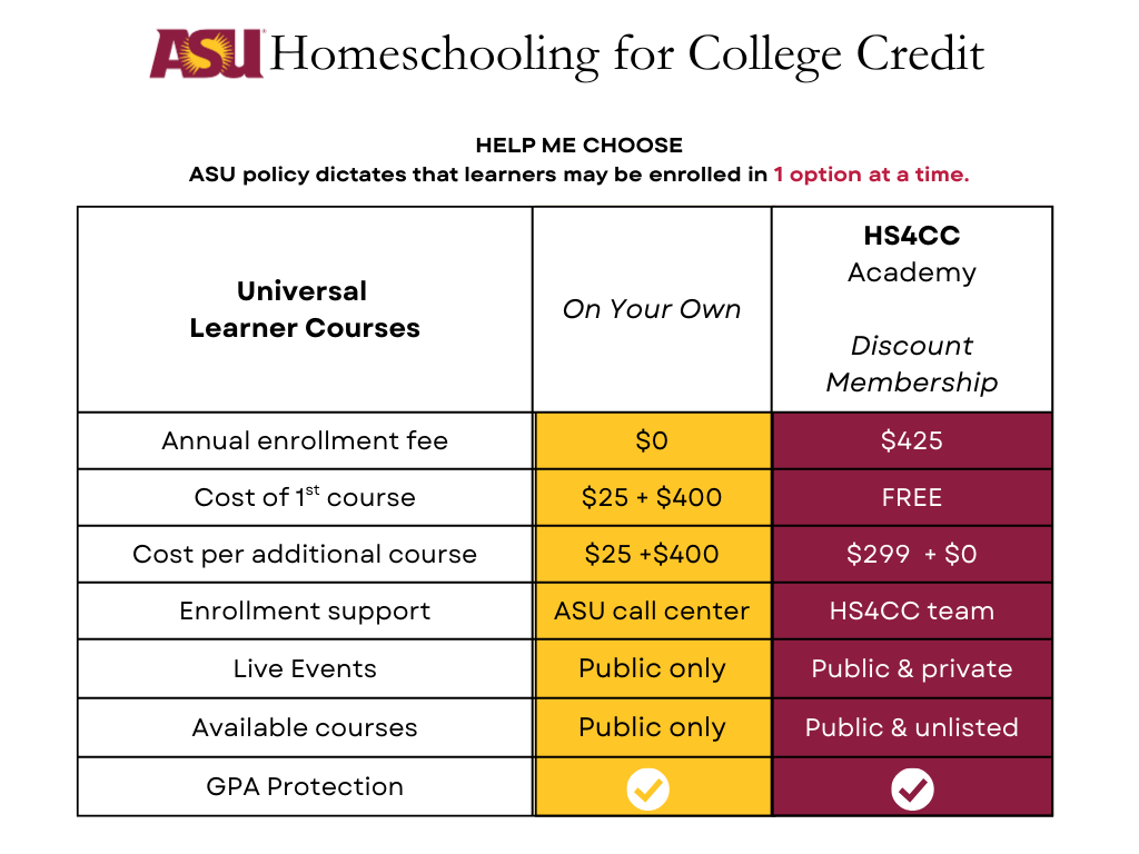 Homeschooling Disclaimer: Each parent is solely responsible for ensuring that ASU courses comply with all applicable state laws and regulations governing homeschooling.